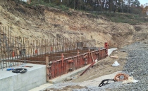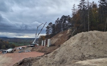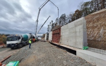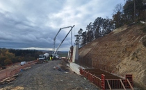 Na stavbě budoucí dálnice D6 u Hořesedel probíhá v těchto dnech betonáž zárubní zdi u Hokova. Tento objekt řeší zárubní zeď podél hlavní trasy budoucí D6 v km 56,850 – 56,962. Zárubní zeď je umístěna vpravo ve směru staničení a je délky 112 m. Vzhledem ke zjištění svahových pohybů a rozsahu sesuvného území, bylo řešení upraveno na trvalou kotvenou pilotovou stěnu s obkladem a římsou s plotem výšky 2,0 m. Průběh prací je viditelný i ze stávající I/6. Zeď výše 2 až 7 m má zabezpečit stabilitu svahu odřezu u silničního tělesa komunikace D6. Práce ovšem intenzivně pokračují i na dalších místech celé trasy. Po úseku dlouhém 9,2 km se řidiči projedou v září 2025.