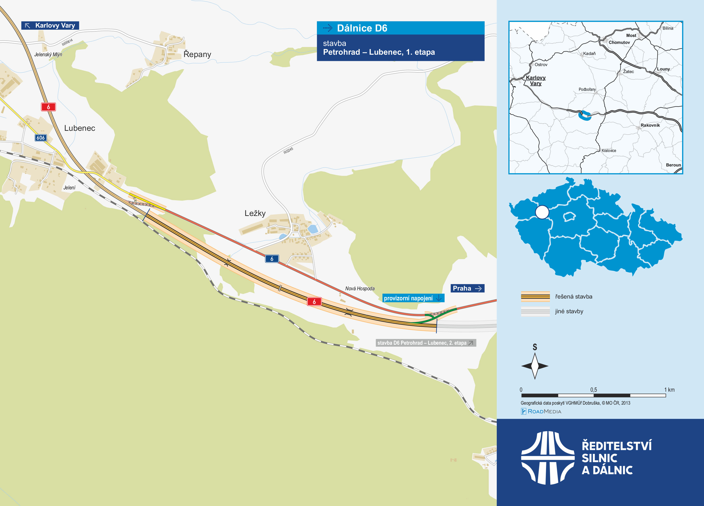 Už tak vydatná porce nových kilometrů na D6 se letos více nezvětší. V plánech ŘSD sice bylo zprovoznění I. etapy stavby Petrohrad-Lubenec, k němuž mělo dojít v prosinci tohoto roku, ale z důvodu dlouhotrvající konsolidace násypu se letos 2,2 km dlouhý úsek D6 nedaleko obce Ležky nepodaří zprovoznit. Termín zprovoznění bude ŘSD upřesňovat dle postupu prací. Ke zprovoznění dojde pravděpodobně v období 04–05/2026.